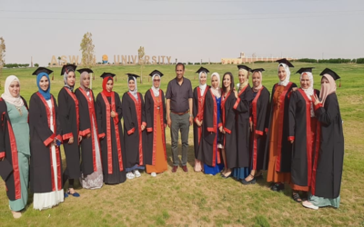 In the light of the precautionary measures that have been taken by Aswan University headed by Prof.Ahmed Ghallab-Aswan University President for confronting coronavirus; in the occasion of the ending of exams and graduation, Bachelor’s students of the Faculty of Science- Chemistry Department- have taken memorial photos at the entrance of the university among green areas of the landscape that cover the extension of the wall of the University; after it was desert became green areas by the efforts of the administration of the university by the leadership of Prof.Ahmed Ghallab-Aswan University President.