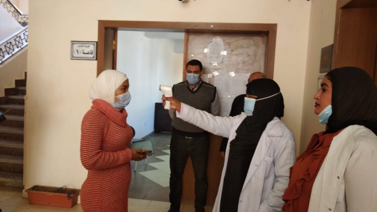 تطبيق الإجراءات الاحترازية اثناء عملية سير الامتحانات