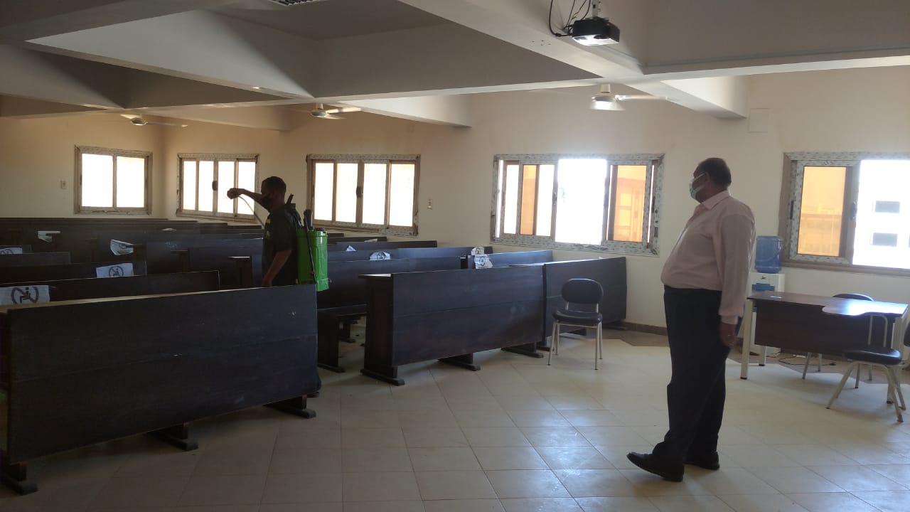 جامعة أسوان تنظم ندوة صحية بالتعاون مع الهيئة العامة للاعتماد والرقابة الصحية تطبيق الإجراءات الاحترازية اثناء عملية سير الامتحانات إجراءات تعقيم الكلية اجتماع اللجنة بالكلية