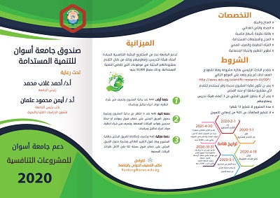 ولقد تم مد فترة التقدم للمشروعات الممولة من قبل صندوق جامعة أسوان للتنمية المستدامة