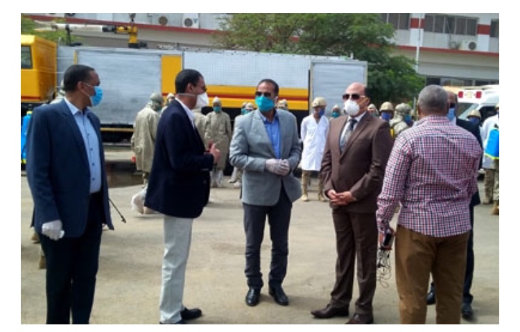 شهد اليوم السبت الأستاذ الدكتور/ أحمد غــلاب محمد – رئيس جامعة أسوان، وبحضور اللواء/ أشرف عطية – محافظ أسوان، والدكتور/ محمد زكي الدهشوري – عميد كلية الطب، والدكتور/ إيهاب حنفي – وكيل وزارة الصحة بأسوان وقائد المنطقة العسكرية بأسوان، قامت القوات المسلحة بأعمال التطهير والرش والتعقيم بالحرم الجامعي بصحاري.