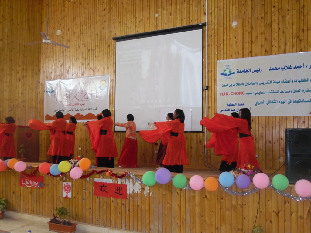 نظم قسم اللغة الصينية بكلية الآلسن جامعة أسوان برئاسة الأستاذ الدكتور/ أحمد غلاب محمد – رئيس الجامعة وتحت رعايته ، بحضور الأستاذ الدكتور/ ايمن عثمان – نائب رئيس الجامعة للدراسات العليا والبحوث ، الأستاذ الدكتور/ حنان عبدالمنعم – نائب رئيس الجامعة لشئون التعليم والطلاب ، السيد/ سونغ بو – المستشار التعليمى الصينى بسفارة الصين بالقاهرة ، الدكتور/ خان تشونع – ممثل المكتب التعليمى الصينى بسفارة الصين بالقاهرة ، الدكتور/ رحاب محمود – مدير معهد كونفشيوس جامعة القاهرة ، الأستاذ الدكتور/ إحسان عبد القدوس – عميد كلية الآلسن بجامعة أسوان ، والدكتور/ سامية عبد الحفيظ – المشرف على قسم اللغة الصينية بكلية الآلسن جامعة أسـوان ، إحتفالاً باليوم الثقافى .