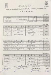 وتدعو الكلية جميع الطلاب إلى الاطلاع على الجداول المعلنة والتأكد من مواعيد الامتحانات وأماكن انعقادها، مع ضرورة الالتزام الكامل بالتعليمات والضوابط المنظمة لسير الامتحانات العملية، بما يضمن حسن انتظامها وتحقيق أقصى درجات الانضباط داخل اللجان والمعامل والقاعات المخصصة.