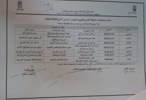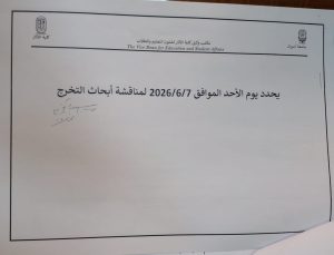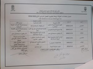 وتدعو الكلية جميع الطلاب إلى الاطلاع على الجداول المعلنة والتأكد من مواعيد الامتحانات وأماكن انعقادها، وكذلك متابعة مواعيد مناقشة مشروعات التخرج الخاصة بهم، مع الالتزام بكافة التعليمات والضوابط المنظمة لسير الامتحانات والمناقشات العلمية.