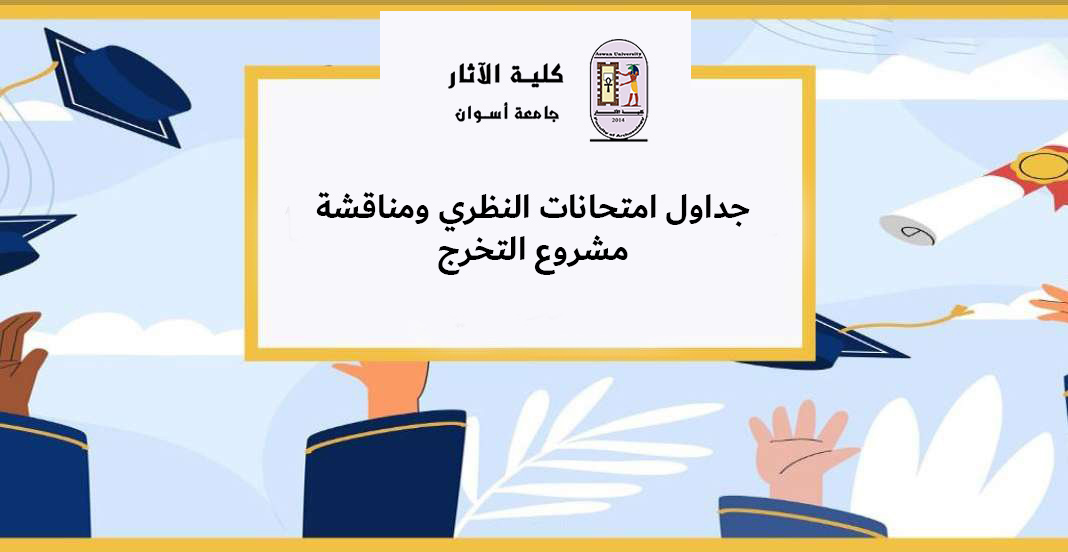 تُعلن كلية الآثار بجامعة أسوان عن جداول امتحانات المقررات النظرية، إلى جانب مواعيد مناقشة مشروعات التخرج، وذلك في إطار الاستعدادات الجارية لاستكمال أعمال الامتحانات وفق الخطة الزمنية المعتمدة للعام الجامعي.