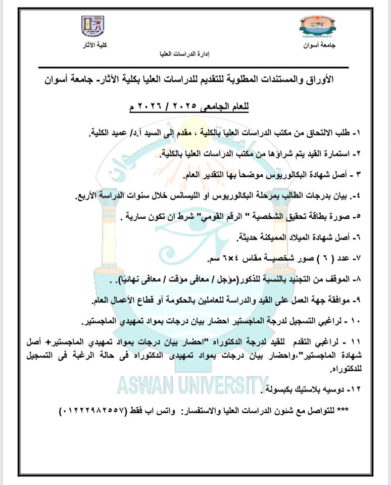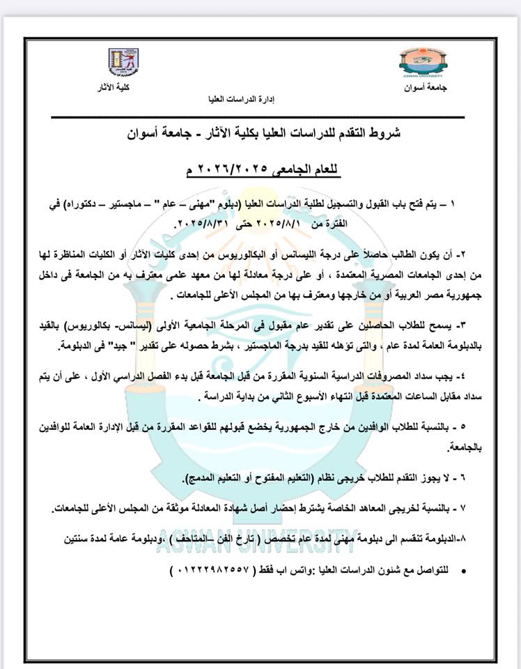 فتح باب التقدم للدراسات العليا للعام الجامعي ٢٠٢٥-٢٠٢٦