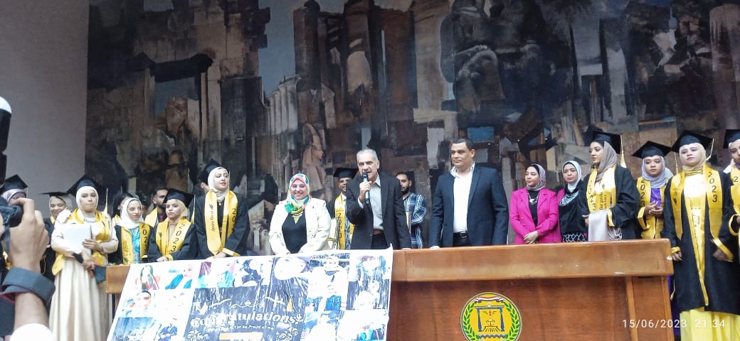 شهدت كلية الآثار مساء يوم الخميس الموافق 15 يونيو 2023م بقاعة القوات المسلحة بكورنيش النيل في تمام الساعة السابعة مساءاً حفل خريجي كلية الآثار جامعة أسوان ، وشهد الحفل السيد الأستاذ الدكتور لؤي نصرت نائب رئيس الجامعة لشئون التعليم والطلاب والسيدة الأستاذة الدكتورة ثناء أبو طالب عميد الكلية والسادة أعضاء هيئة التدريس والهيئة المعاونة وأهالي الطلبة والطالبات من الأقسام الثلاثة ، وافتتح الحفل بقراءة مباركة بآيات من الذكر الحكيم ، إضافة إلى فقرة إلقاء الشعر وعرض والقاء كلمة مقدم من طلبة الكلية ، واختتم الحفل بتكريم السادة أعضاء هيئة التدريس للطلبة والأهالي وتكريم السادة أعضاء هيئة التدريس .