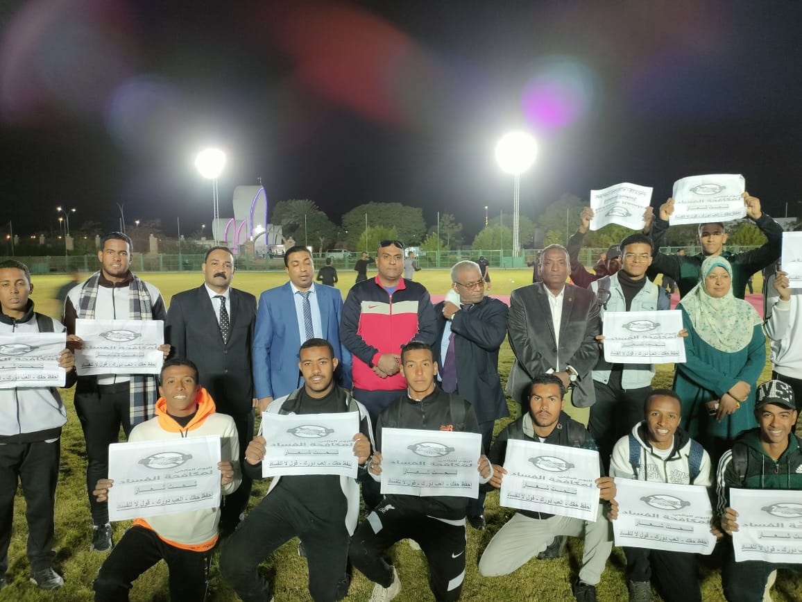 وذلك فى ضوء الإحتفال باليوم العالمى فى مجال تجفيف منابع الفساد والعمل على مكافحته، والتوعية بمؤشرات قياس وإدراك الفساد ولنشر التوعية المجتمعية من خلال المهرجان الرياضى التطبيقى للإحتفال بهذه المناسبة فى ضوء التوعية المجتمعية لأبنائنا الطلاب والعاملين وأعضاء هيئة التدريس ومعاونيهم تحت شعار “احفظ حقك – العب دورك – قول لا للفساد” والتى أقيمت بإشراف الدكتور/ عادل مكى- عميد كلية التربية الرياضية والدكتور/ حازم عبداللاه الجمل رئيس لجنة مكافحة الفساد وعميد كلية الألسن.